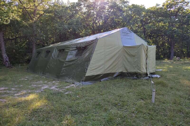 Армейская каркасная 40-местная палатка ПОЛИГОН-40 обеспечивает комфортное всесезонное размещение персонала, организацию пунктов приема пищи, санитарных пунктов, пунктов обеспечения, хозяйственных нужд, для хранения оборудования и материалов в полевых условиях.